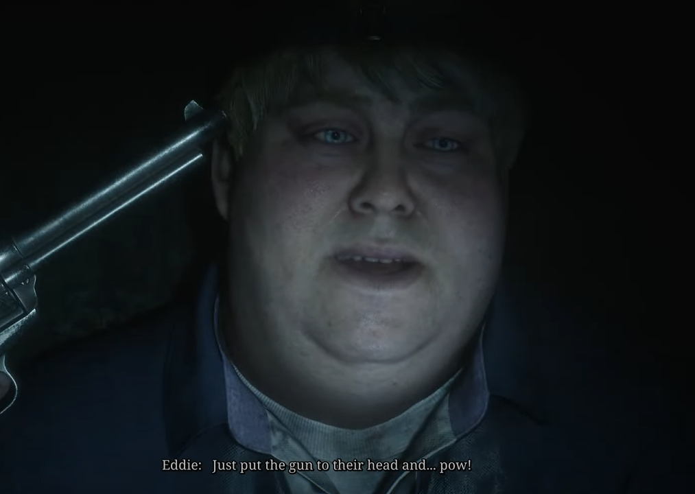 Eddie no me apasiona mucho, pero tampoco me disgusta su presencia en el juego. Lo que tiene para contar me removió, aunque no tanto como la historia de Angela. Sin embargo, ese deje de locura que tiene y esa mirada perdida me encantó que formasen parte del juego. Le da otro toque más de turbidez a la trama.