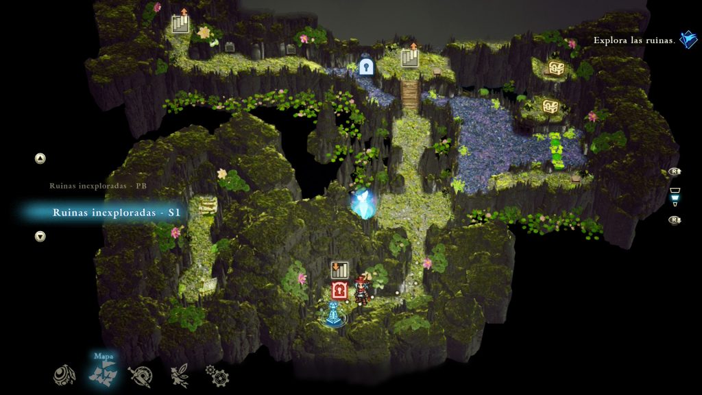 Por el mapa hay repartidas señales de aventurero en las que podrás guardar tu progreso y que funcionarán también como puntos de teletransporte.