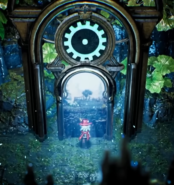 Para finalizar, la demo nos deja un cliffhanger. Al derrotar al jefe del pez y seguir el camino, llegamos a una extraña puerta, la Puerta del Tiempo, que, si cruzamos, nos lleva a un fundido en blanco y a los créditos.