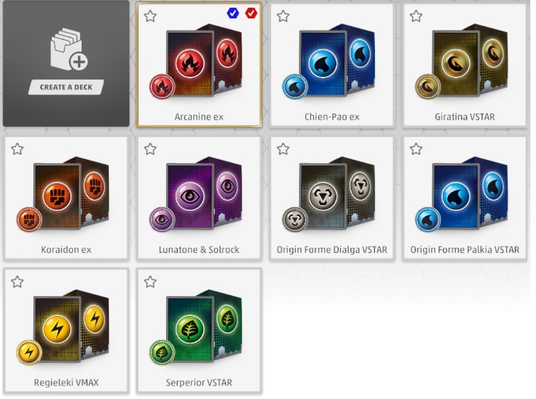 Te vienen barajas ya preestablecidas para que las pruebes y, si juegas en el modo competición, irás ganando unas gemas que podrás canjear por las cartas que te interesen. Así modifiqué yo en el TCG Live mi baraja principal, y así es como pruebo los mazos que encuentro en la web que te he mostrado de Limitless.